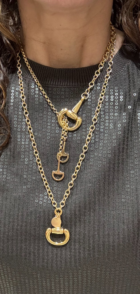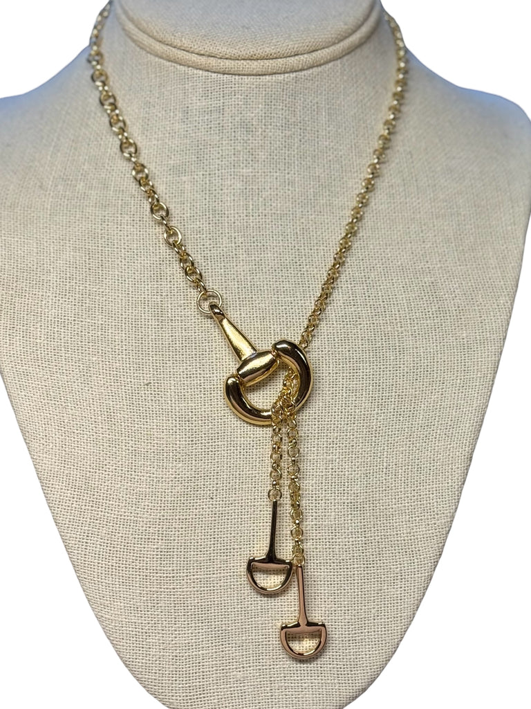 SKU CB753-NIntroducing Cassy—a playful take on equestrian style. This asymmetrical "Y" necklace features horse bits in two sizes, paired with mismatched chain that create an effortlessly cool vibe. The mix of large and small elements gives it modern edge. Perfect for adding personality to any look.